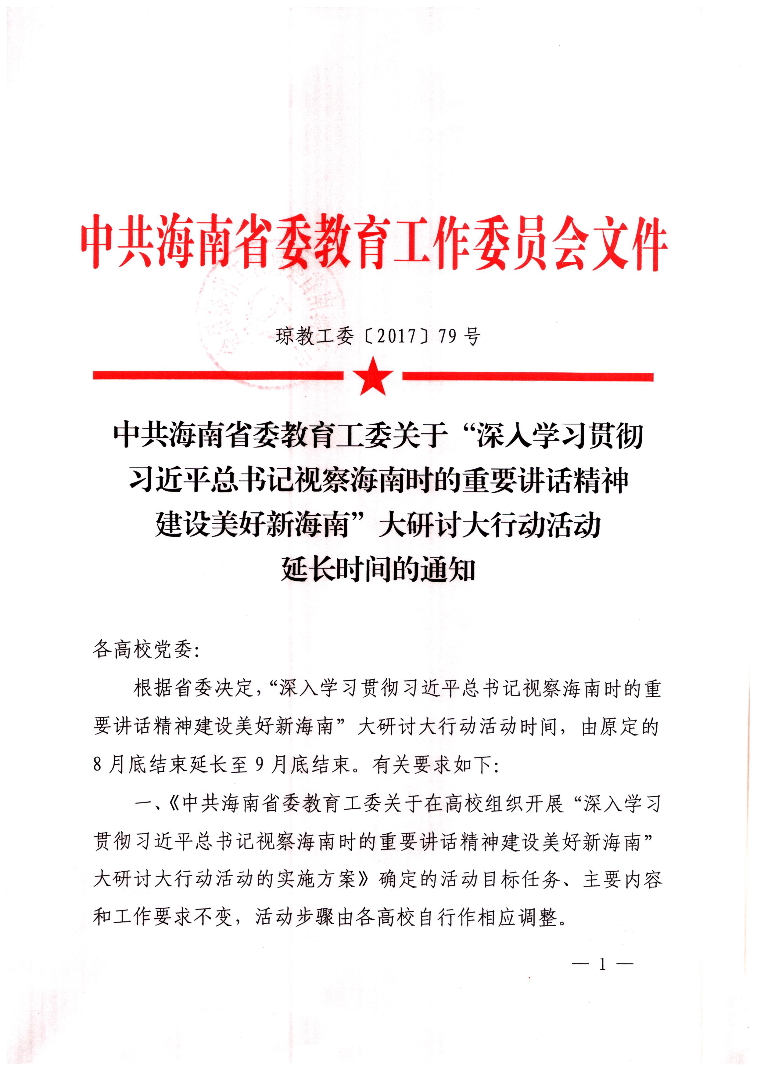 中共海南省委教育工委關(guān)于“深人學(xué)習(xí)貫徹習(xí)近平總書記視察海南時的重要講話精神建設(shè)美好新海南”大研討大行動活動延長時間的通知
