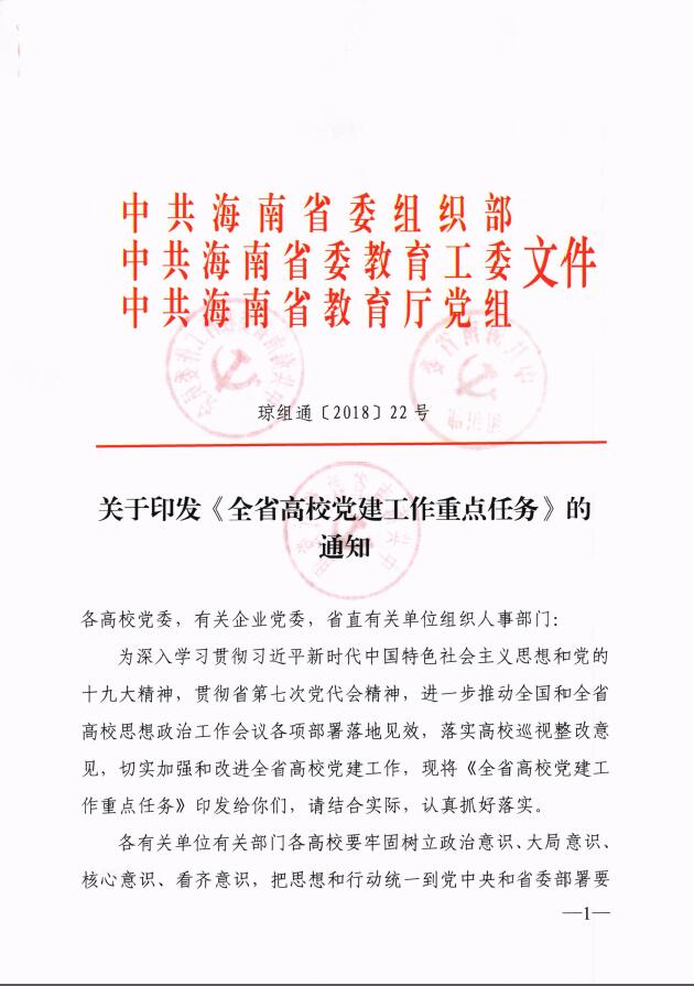 關(guān)于印發(fā)《全省高校黨建工作重點任務(wù)》的通知