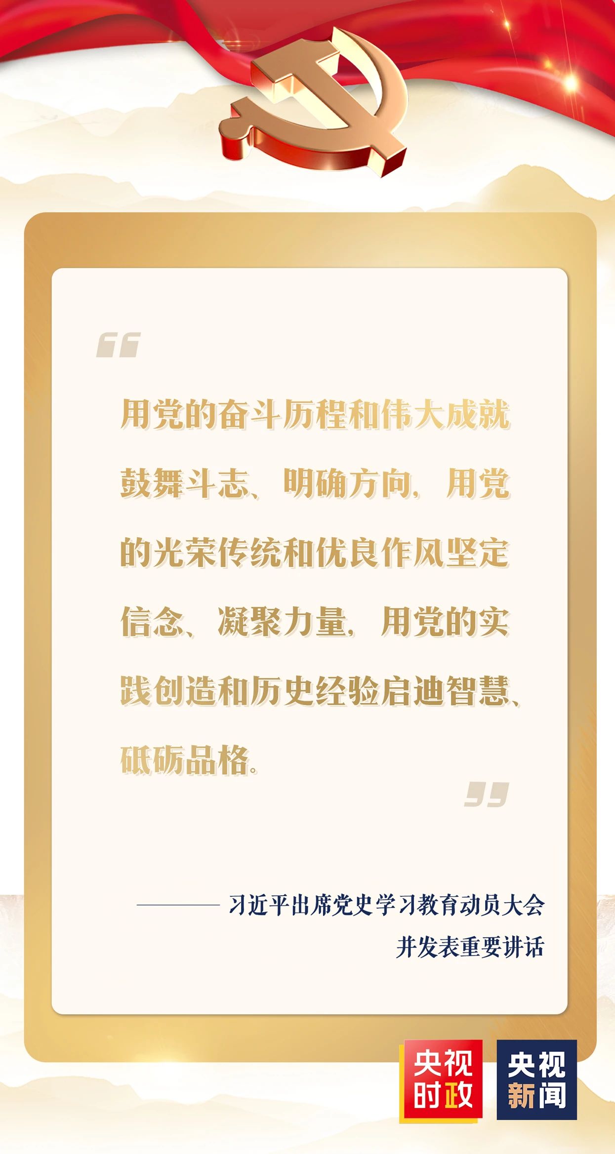 ????在全黨開展黨史學(xué)習(xí)教育,是黨的政治生活中的一件大事。全黨要高度重視,提高思想站位,立足實(shí)際、守正創(chuàng)新,高標(biāo)準(zhǔn)高質(zhì)量完成學(xué)習(xí)教育各項(xiàng)任務(wù)。