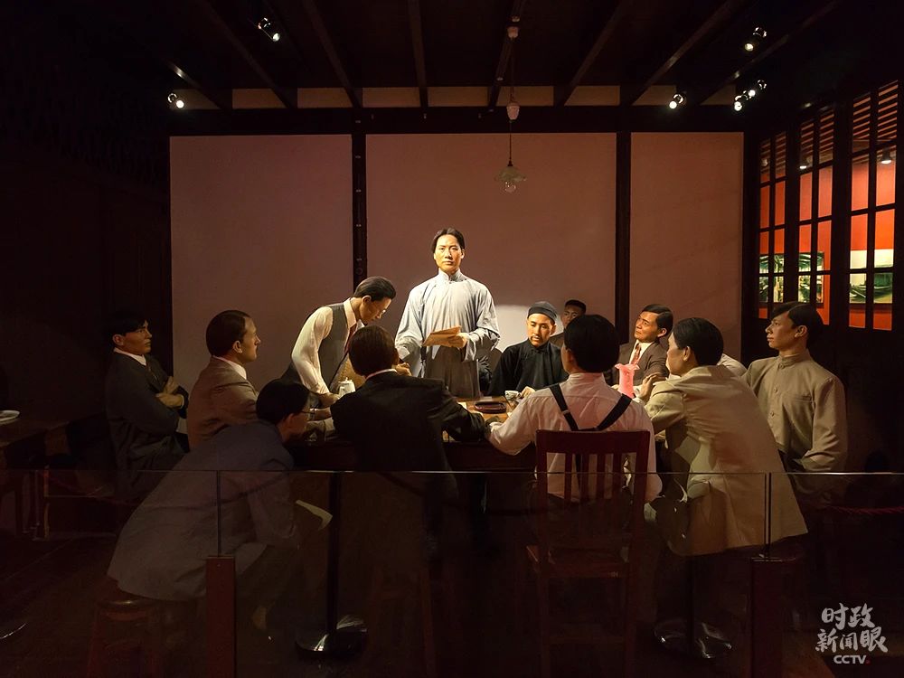 ??????△中共一大會址紀(jì)念館,還原“一大會議”現(xiàn)場的蠟像展覽。