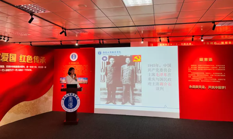 ????專題黨課《重慶談判》由衛(wèi)生健康學院黨支部學生黨員畢藝瑋主講,她圍繞重慶談判的時代背景、目的、結果和歷史意義展開講述,在講述中帶領師生重返重慶談判的歷史場景。