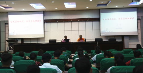 本網(wǎng)訊 (通訊員 潘穎)6月6日下午,我校辦公行政能力提升培訓(xùn)活動(dòng)的第二期------公文寫(xiě)作培訓(xùn)如期舉行,來(lái)自海南大學(xué)的王一凡老師與大家分享了公文寫(xiě)作規(guī)范、標(biāo)準(zhǔn)與處理技巧。