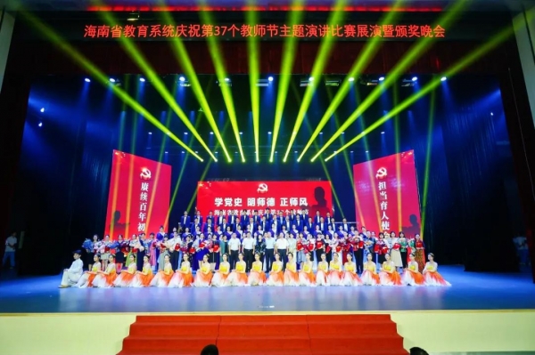 9月9日晚,“學(xué)黨史 明師德 正師風(fēng)”海南省教育系統(tǒng)慶祝第37個(gè)教師節(jié)主題演講比賽展演暨頒獎(jiǎng)晚會(huì)在海南中學(xué)順利落幕。省人民政府副秘書長賴泳文,省教育廳黨委書記、廳長曹獻(xiàn)坤,省委機(jī)構(gòu)編制委員會(huì)辦公室一級(jí)巡視員殷永靜,省人力資源和社會(huì)保障廳二級(jí)巡視員羅海波,省教育廳派駐紀(jì)檢組組長周靈均,省教育廳副廳長李燕儀,省發(fā)展和改革委員會(huì)社會(huì)發(fā)展處副處長陳林敏等領(lǐng)導(dǎo)出席觀看。