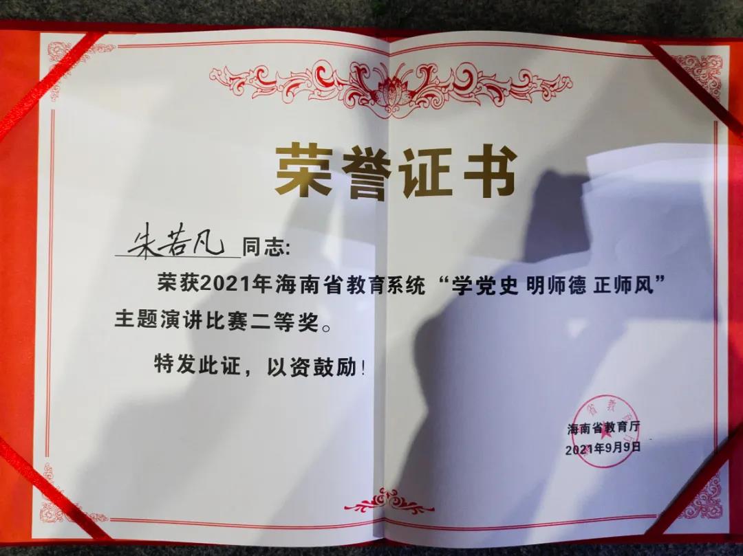 喜報(bào) | 我校朱若凡老師榮獲海南省教育系統(tǒng)慶祝教師節(jié)主題演講比賽二等獎(jiǎng)
