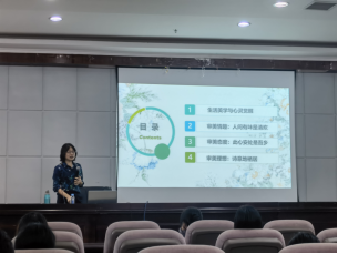 楊老師從生活美學與心靈覺醒、審美情趣:人間有味是清歡、審美態(tài)度:此心安處是吾鄉(xiāng)、審美理想:詩意地棲居四個方面展開講座。楊老師帶同學們了解蘇東坡的人生經歷,分析蘇東坡的古詩詞。蘇東坡的一生崎嶇坎坷,但他用樂觀與豁達,把失意的人生過得灑脫而精彩。縱然生活有一千種挫折,蘇東坡就有一千種對抗挫折的方法,化成美酒佳茗、化成赤壁的濤聲承天寺的月光;化成香噴噴的東坡肉甘甜的荔枝;化成朋友間的嬉笑,化成對愛人徹骨的思念。