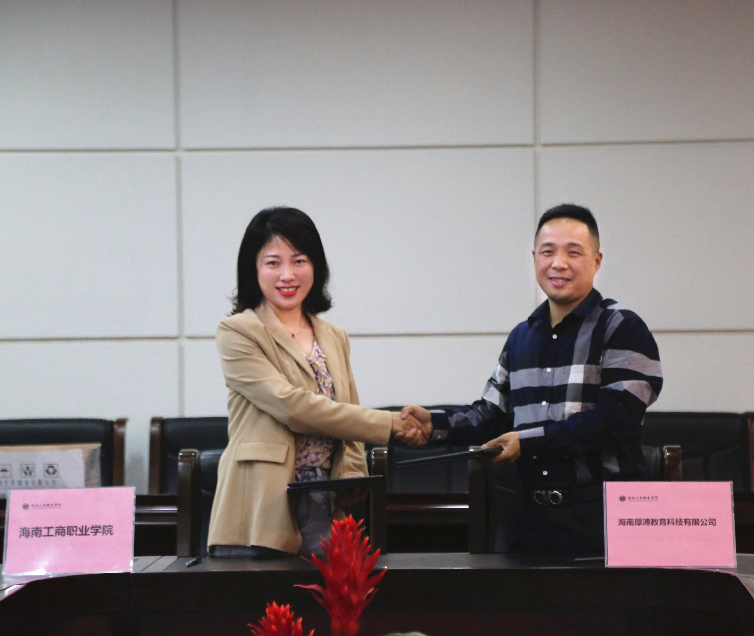 本報(bào)訊 12月15日,海南工商職業(yè)學(xué)院與海南厚溥教育科技有限公司校企合作儀式在學(xué)校7樓會(huì)議室舉行。海工商代校長(zhǎng)陳立麗、副校長(zhǎng)羅愛玲、海南厚溥教育科技有限公司執(zhí)行董事兼總經(jīng)理黎明杰出席,學(xué)校黨委副書記劉騫主持。