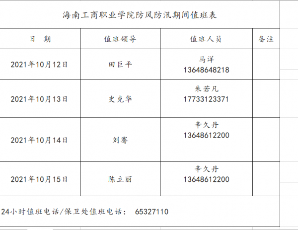 5.各學(xué)院(部)、各部門要安排專人做好臺(tái)風(fēng)影響期間24小時(shí)值班值守工作并保持通信暢通,發(fā)現(xiàn)險(xiǎn)情要及時(shí)處理并上報(bào)分管領(lǐng)導(dǎo)。黨政辦負(fù)責(zé)按上級(jí)教育部門要求及時(shí)報(bào)送工作動(dòng)態(tài)。