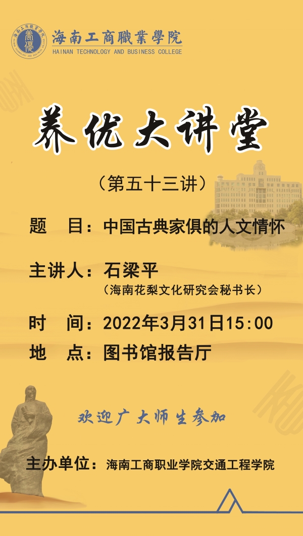 第五十三講“養(yǎng)優(yōu)大講堂”將于2022年3月31日15:00在圖書館報告廳隆重開講!