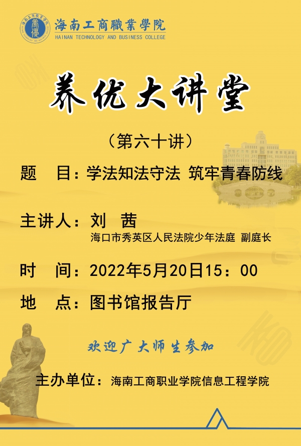 第六十講“養(yǎng)優(yōu)大講堂”將于2022年5月20日15:00在圖書館報(bào)告廳開講!?