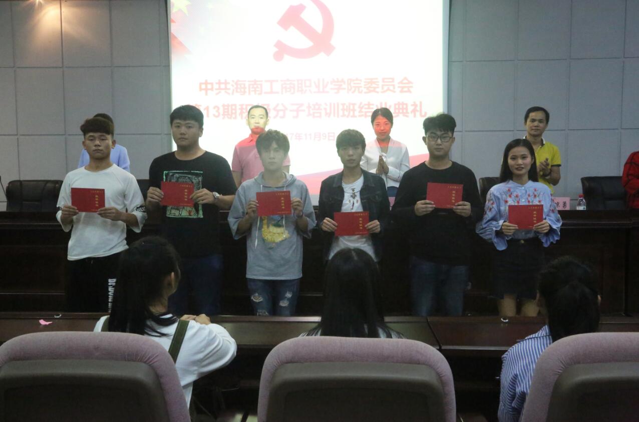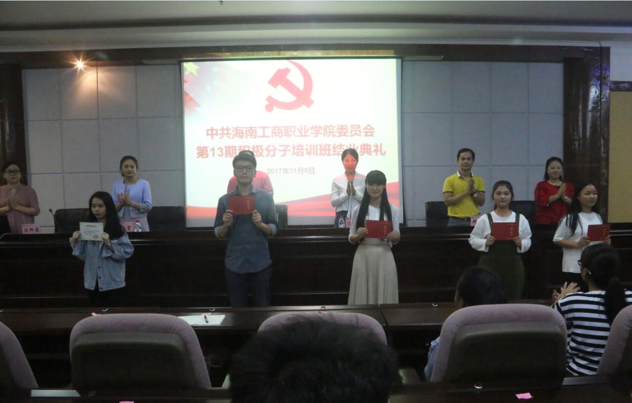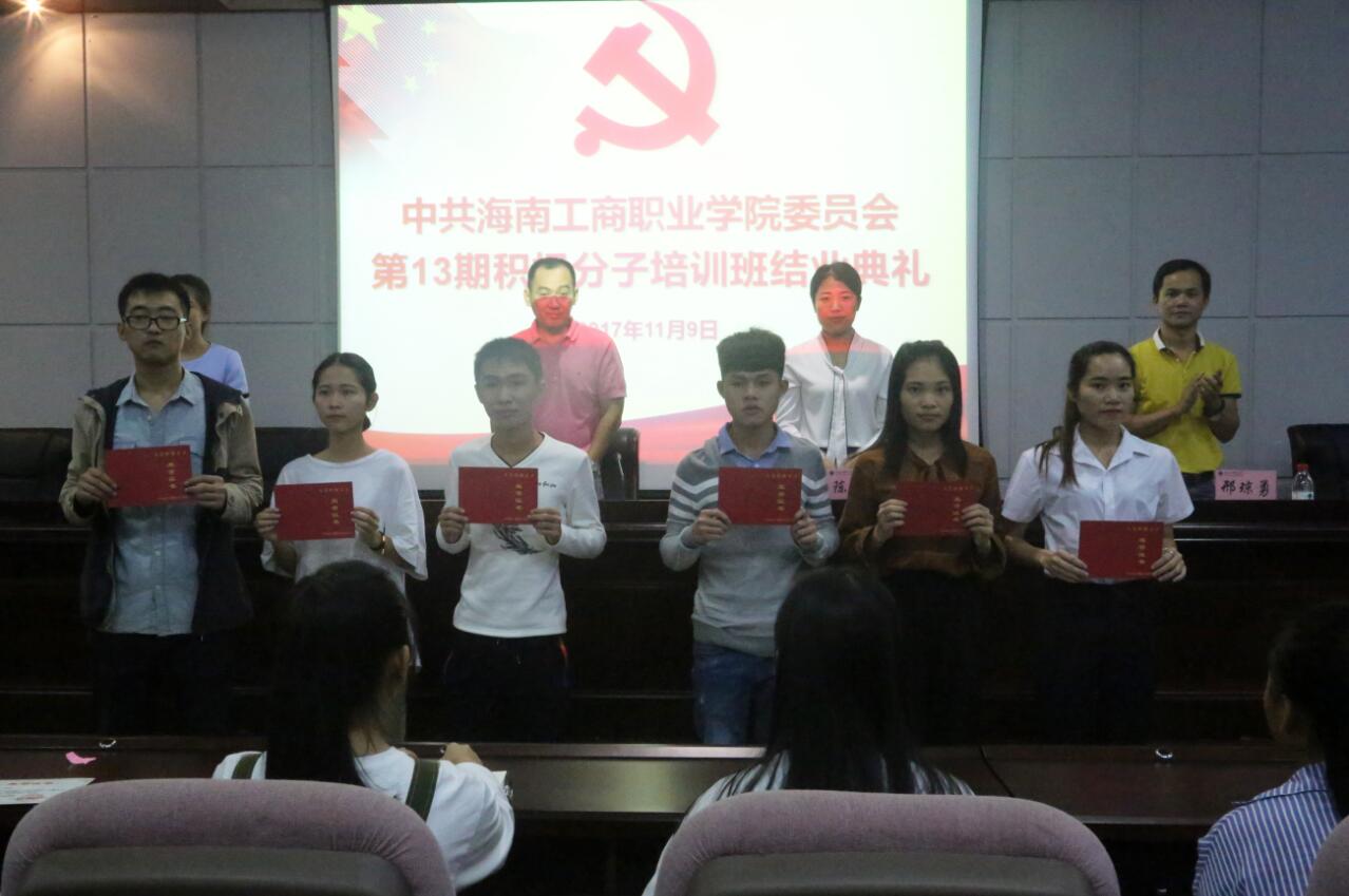會(huì)上,黨委委員陳立麗副校長(zhǎng)宣讀了《中共海南工商職業(yè)學(xué)院委員會(huì)黨校關(guān)于表彰2017年第13期入黨積極分子培訓(xùn)班優(yōu)秀學(xué)員的決定》,隨后與會(huì)領(lǐng)導(dǎo)為優(yōu)秀學(xué)員頒發(fā)了榮譽(yù)證書并合影留念。