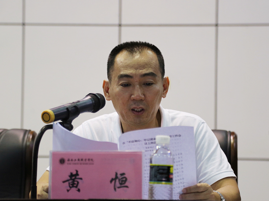 黃恒書記在講話中指出,“不忘初心、牢記使命”是黨的十九大向全黨提出的要求,是黨中央統(tǒng)攬偉大斗爭、偉大工程、偉大事業(yè)、偉大夢想做作的重大部署。在喜迎新中國70華誕之際,召開“不忘初心、牢記使命”主題教育工作會議,對高校落實立德樹人的根本任務具有特殊而深遠的意義。為開展好主題教育,要重點做到三點:一是深刻認識主題教育重大意義,切實增強行動自覺;二精準聚焦主要任務,扎實開展主題教育;三是精心安排組織實施,確保主題教育取得實效。