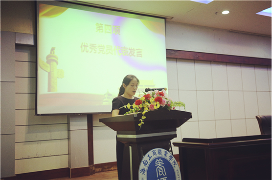 優(yōu)秀黨員代表白萌娜同志做表態(tài)發(fā)言