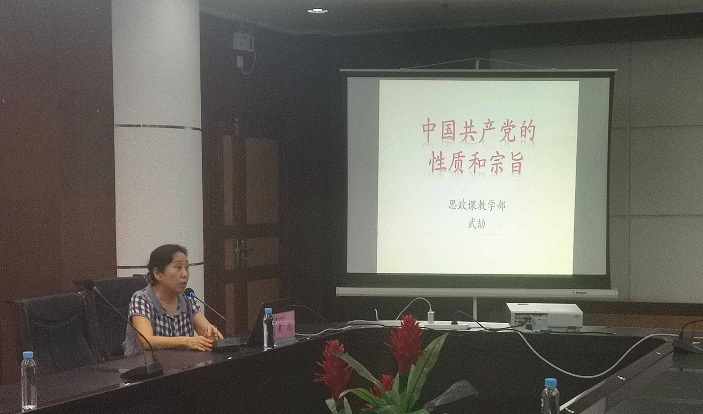 思政課部主任武劼教授向?qū)W員們講述《中國(guó)共產(chǎn)黨的性質(zhì)和宗旨》。她從“兩個(gè)先鋒隊(duì)”、“一個(gè)領(lǐng)導(dǎo)核心”、“三個(gè)代表”、“黨的最高理想和最終目標(biāo)”等四個(gè)方面闡述了黨的性質(zhì),并結(jié)合焦裕祿、王進(jìn)喜、任長(zhǎng)霞、黃文秀和鐘南山等先進(jìn)事跡生動(dòng)詮釋中國(guó)共產(chǎn)黨全心全意為人民服務(wù)的宗旨。