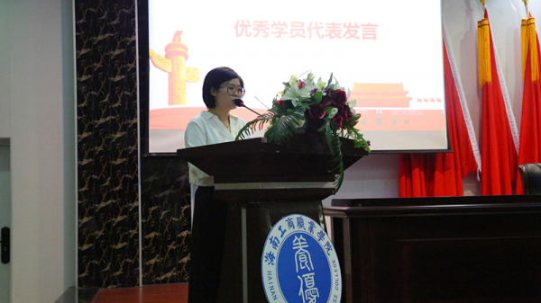 結業典禮對培訓班產生的11名優秀學員給予表彰,與會領導為優秀學員頒發榮譽證書。優秀學員代表旅游藝術學院教師吳琦發言。