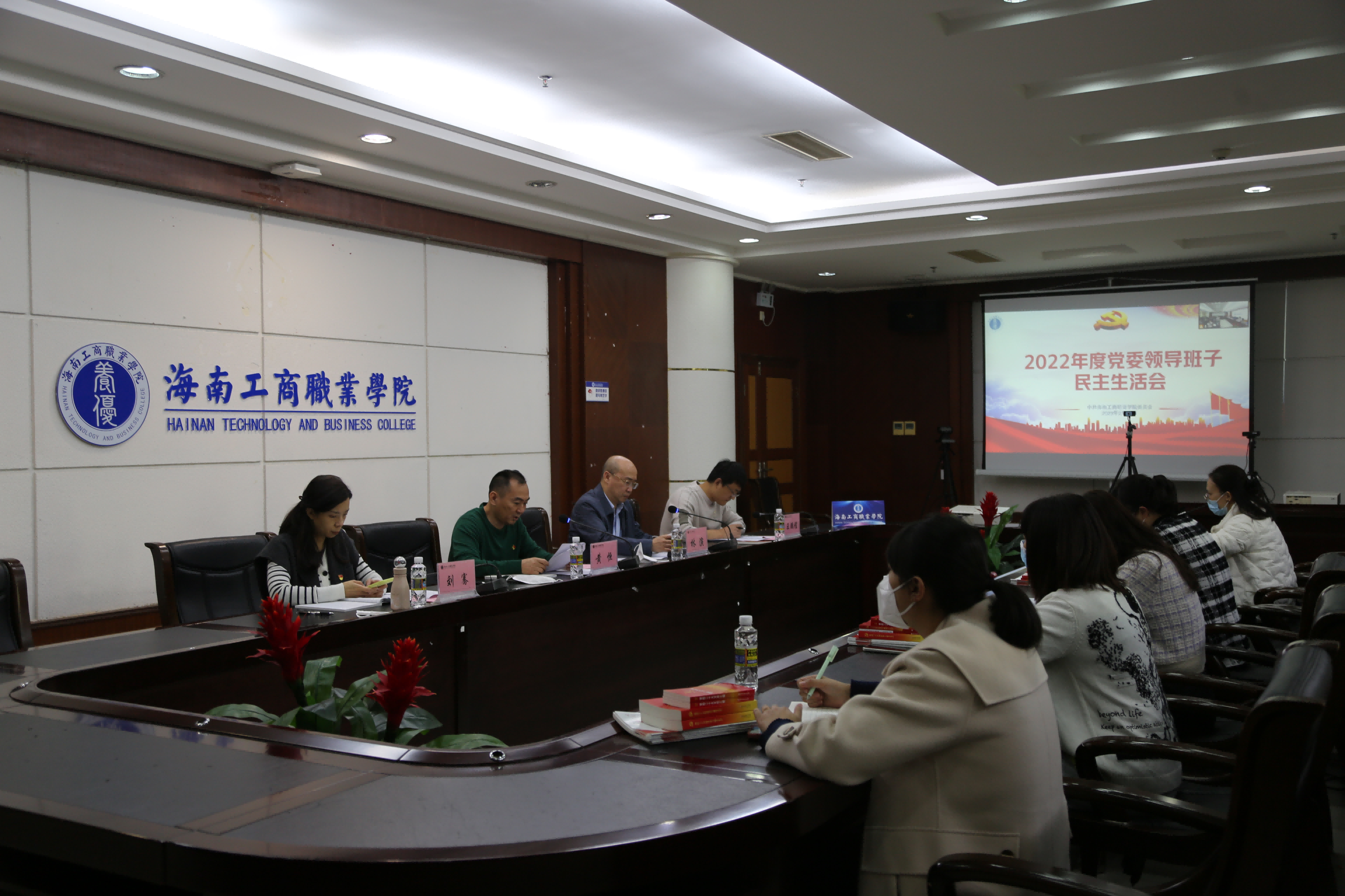 ?????本網訊(通訊員?李艷霞)2023年2月16日,校黨委在行政樓七樓會議室召開2022年度黨員領導干部民主生活會。海南省考試局副局長林演同志到會指導。全體校黨委委員參加會議,各黨支部書記列席會議。會議由黨委書記黃恒主持。