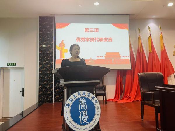 ? ?黨委委員王鵬程宣讀了《中共海南工商職業(yè)學院委員會黨校關(guān)于表彰第24期入黨積極分子培訓班優(yōu)秀學員的決定》,經(jīng)過結(jié)業(yè)考核、課程考核、綜合評選等環(huán)節(jié),本次培訓班共產(chǎn)生優(yōu)秀學員13名,與會領(lǐng)導為優(yōu)秀學員頒發(fā)了榮譽證書。優(yōu)秀學員代表段雪娉發(fā)言。