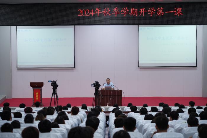 ?本網(wǎng)訊(通訊員 黃 薇)大學(xué)是新階段、新起點(diǎn),是扣好人生第一粒扣子的關(guān)鍵時(shí)期,為加強(qiáng)2024級新生在校學(xué)習(xí)規(guī)劃和職業(yè)規(guī)劃教育,9月24日晚,黨委書記曾德錦在第二學(xué)術(shù)報(bào)告廳講授“扣好大學(xué)生涯第一??圩印睂n}思政課。
