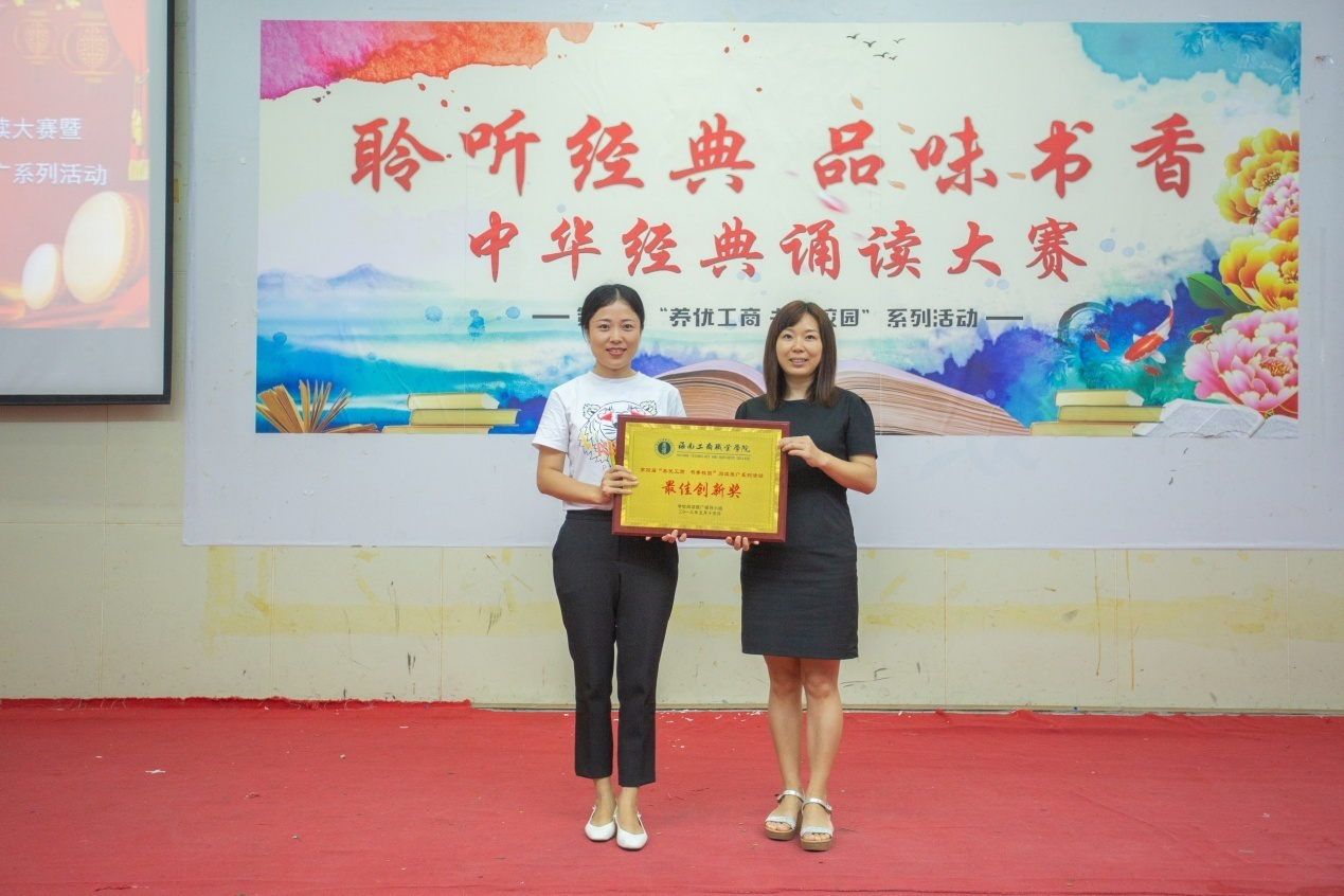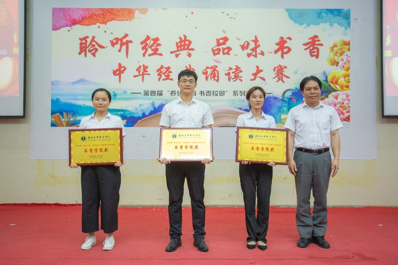 ?? 最后,校領(lǐng)導(dǎo)和各學(xué)院的書(shū)記為“聆聽(tīng)經(jīng)典?品味書(shū)香”中華經(jīng)典誦讀大賽獲獎(jiǎng)?wù)哳C獎(jiǎng),對(duì)本屆閱讀推廣活動(dòng)中獲得各項(xiàng)榮譽(yù)的學(xué)院、優(yōu)秀指導(dǎo)老師和閱讀之星進(jìn)行了表彰并頒獎(jiǎng)。