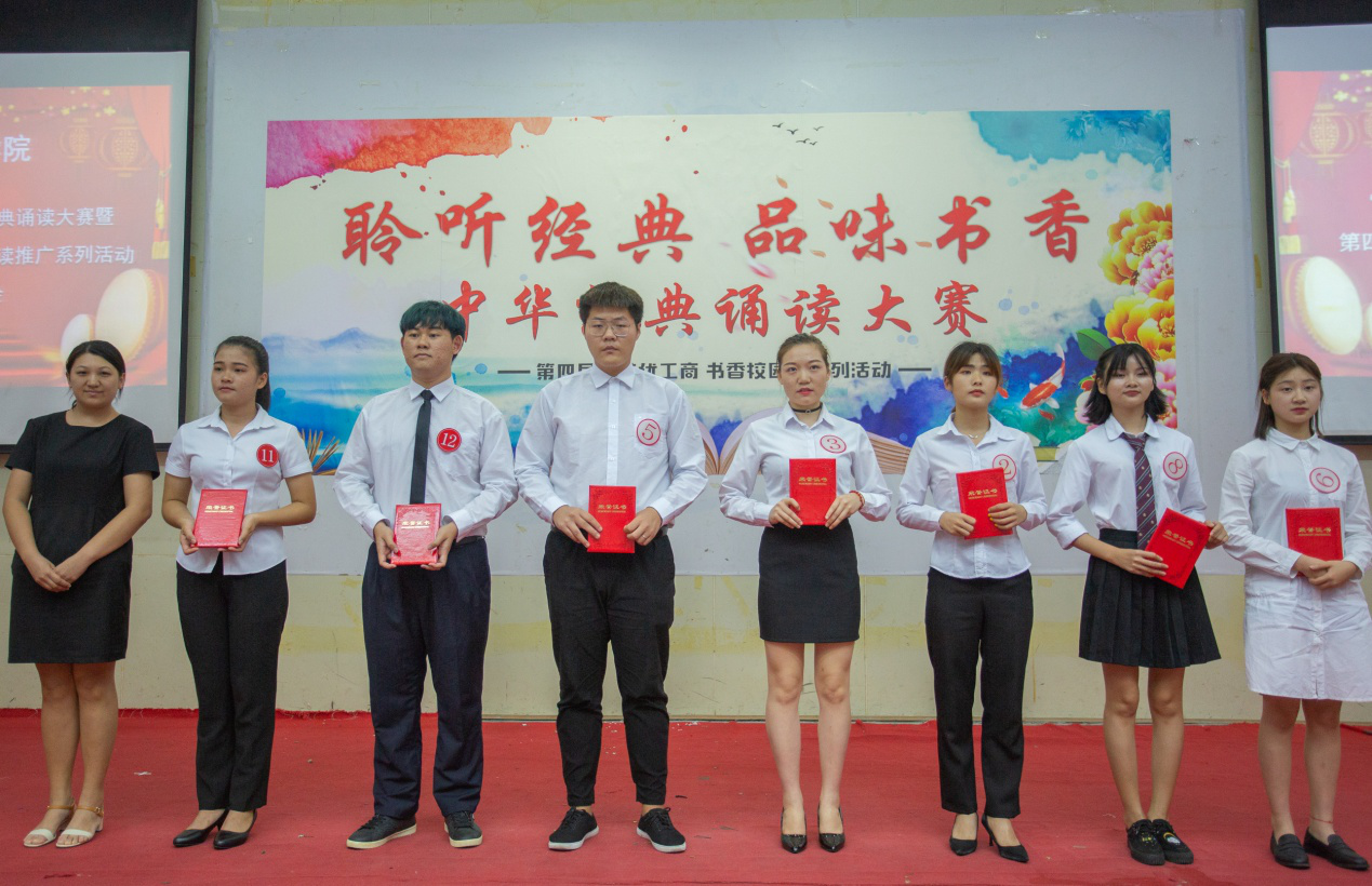 本網(wǎng)訊(通訊員 朱恩榮)5月15日晚,我校在第一教學(xué)樓第二學(xué)術(shù)報(bào)告廳隆重舉行“聆聽(tīng)經(jīng)典?品味書(shū)香”中華經(jīng)典誦讀大賽暨第四屆“養(yǎng)優(yōu)工商 書(shū)香校園”閱讀推廣系列活動(dòng)總結(jié)表彰大會(huì)。校長(zhǎng)符勇、執(zhí)行校長(zhǎng)田巨平、副校長(zhǎng)陳立麗、副校長(zhǎng)李璐、藝術(shù)總監(jiān)武亞安、各職能部門負(fù)責(zé)人,各學(xué)院書(shū)記及400多名師生代表出席了本次活動(dòng)。